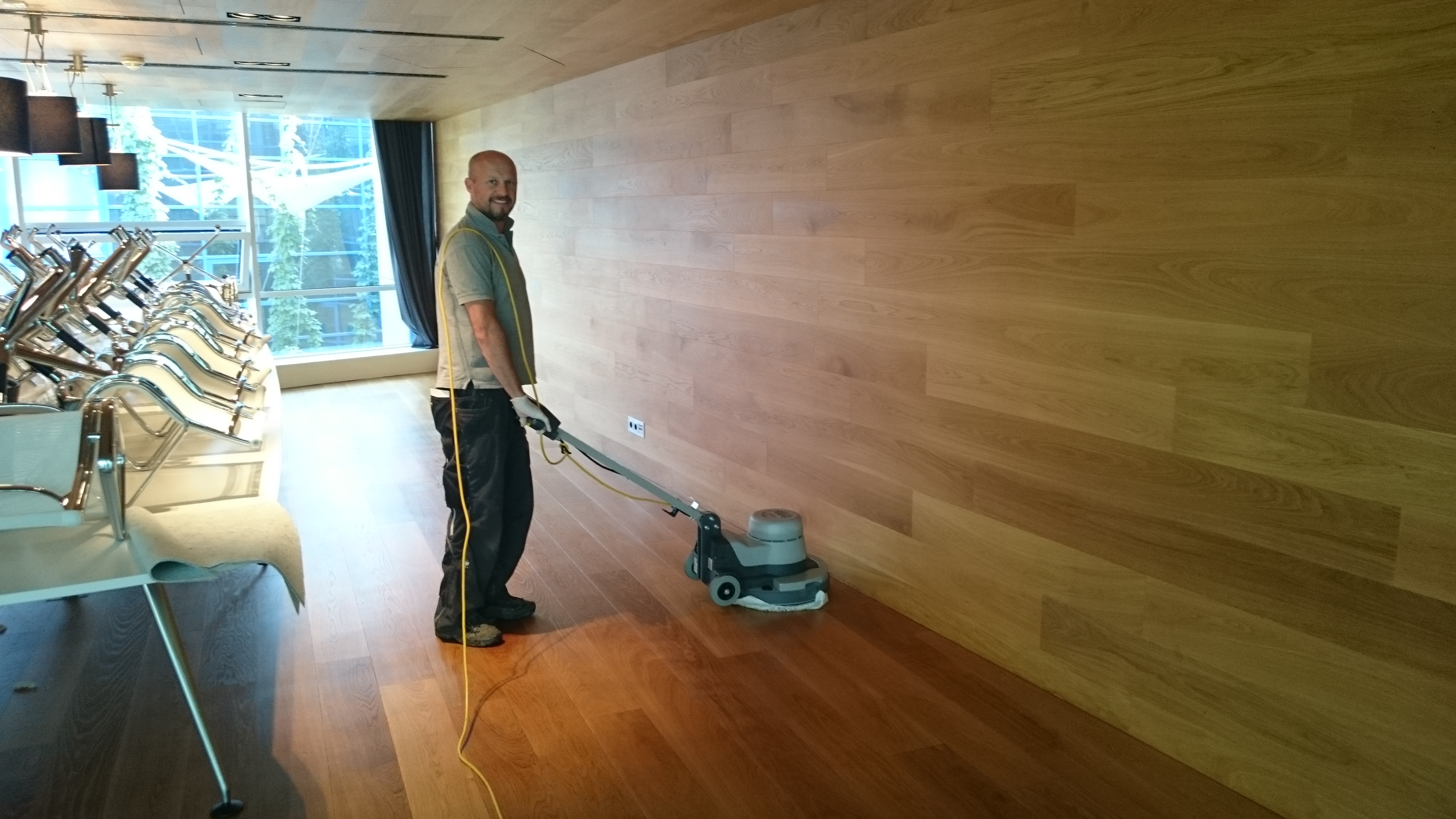 Olejované dřevo v interiéru je nutné pravidelně doolejovávat. Doplnění olejů a vosků by mělo podle zatížení podlahy probíhat minimálně jednou až dvakrát za rok. Pro doolejování používáme techniku "Olejová lázeň" a vysoce kvalitní ošetřovací voskový olej euku refresher, který obsahuje včelí vosk a Carnauba vosk. Výsledek je silně vodoodpudivý povrch s protiskluznou hodnotou R10.