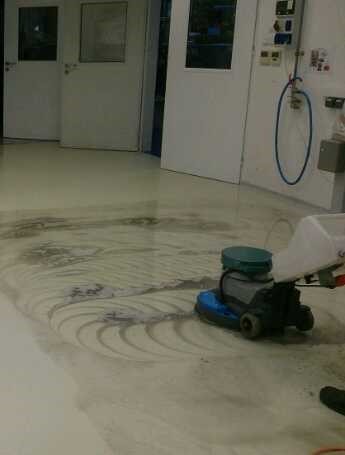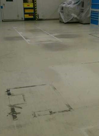 Pracovní činností v této dílně byl povrch lité podlahy velmi silně znečištěn, byl opotřebovaný a nacházely se na něm viditelně ohraničená místa po původně postavených strojích. Základním čištěním, jemným přebroušením povrchu a aplikací nátěru PU ochranná vrstva se povedlo vše uvést do původního stavu.