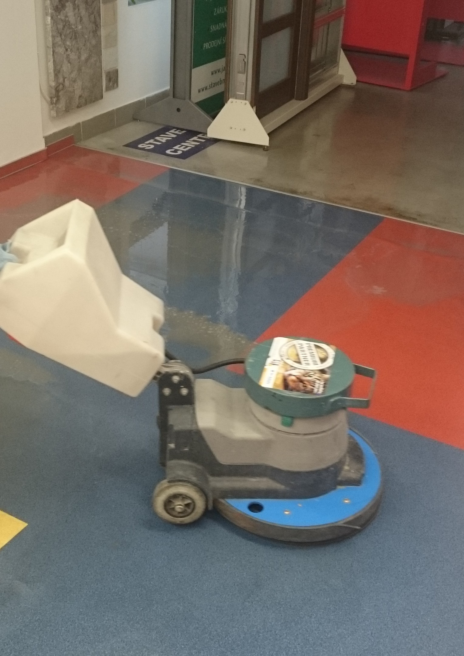 Renovace a sanace povrchu elastických PVC podlah musí být provedena zavčas. Záleží na kvalitě výrobní úpravy povrchu a především na zatížení v konkrétním objektu. Zde bylo vše podchyceno správně a po základním čištění a aplikaci nátěru PU ochranná vrstva vypadala podlaha zase krásně.